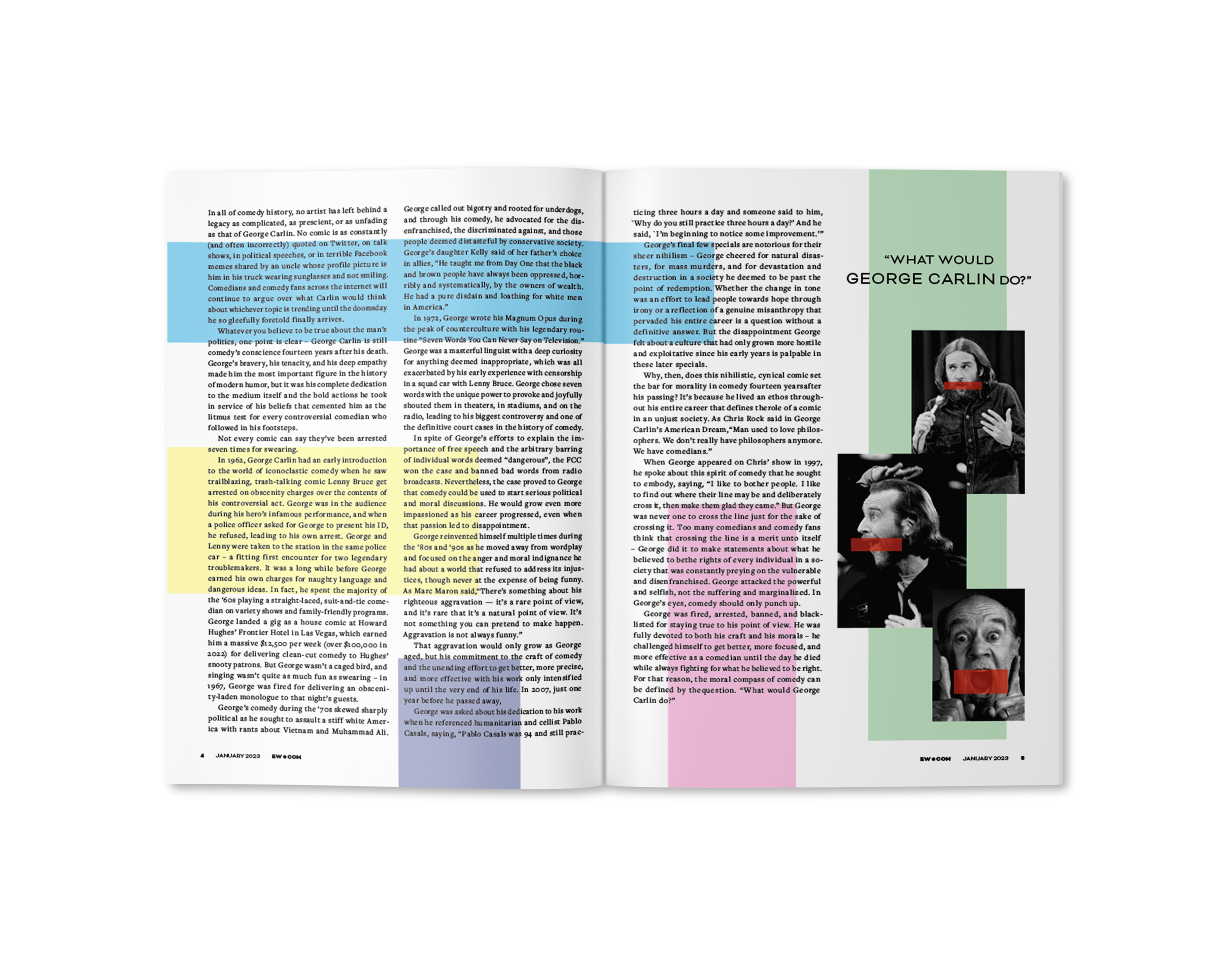 For this project, I had to design (2) magazine spreads to support an article on George Carlin.
