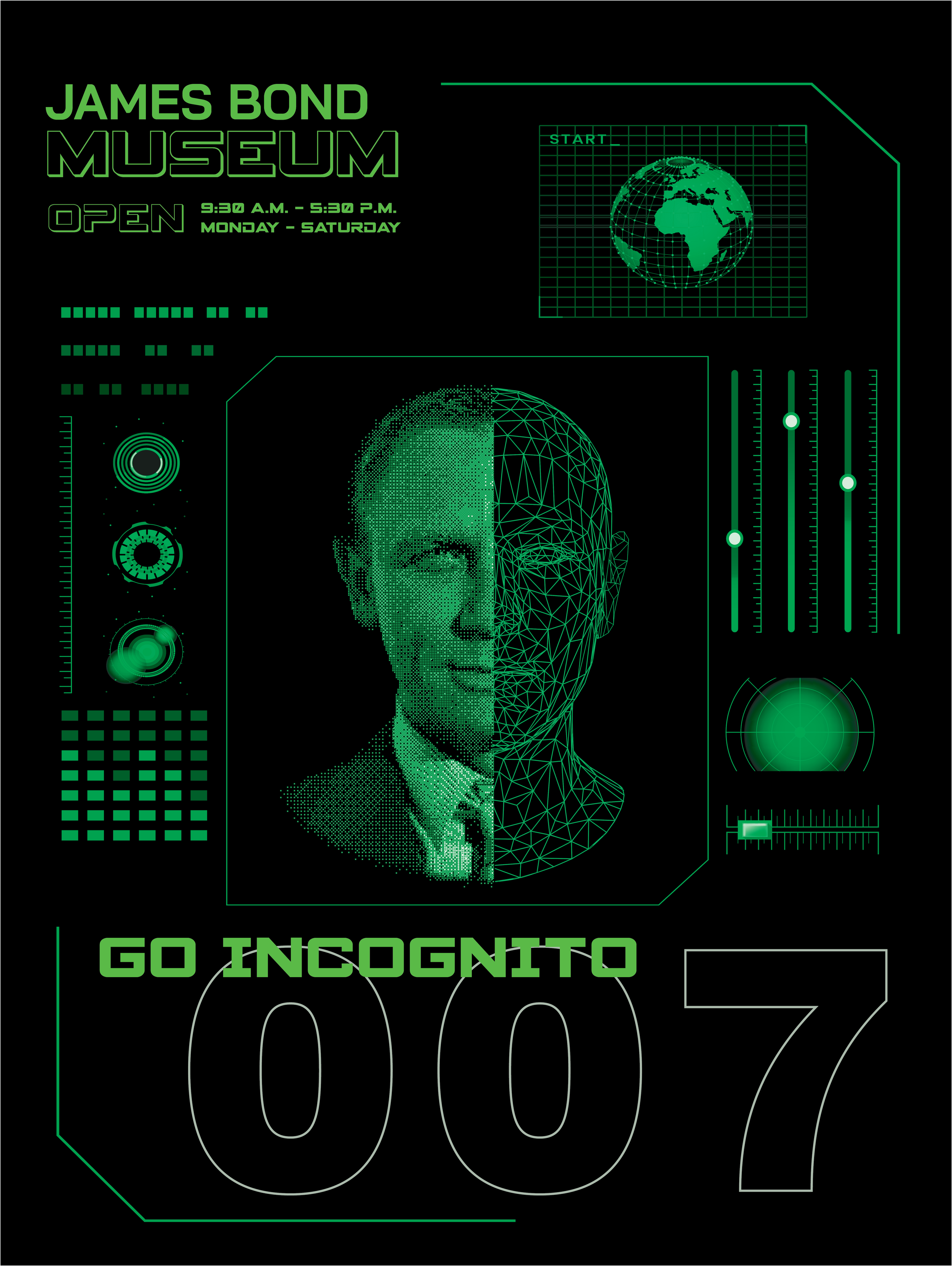 For this project, I had to design and produce a poster and website design for the James Bond Museum.